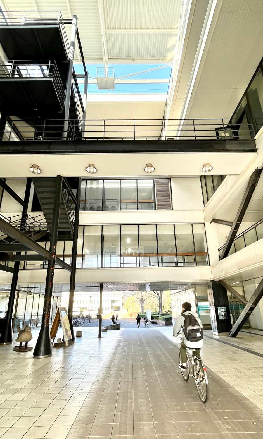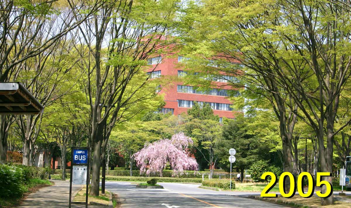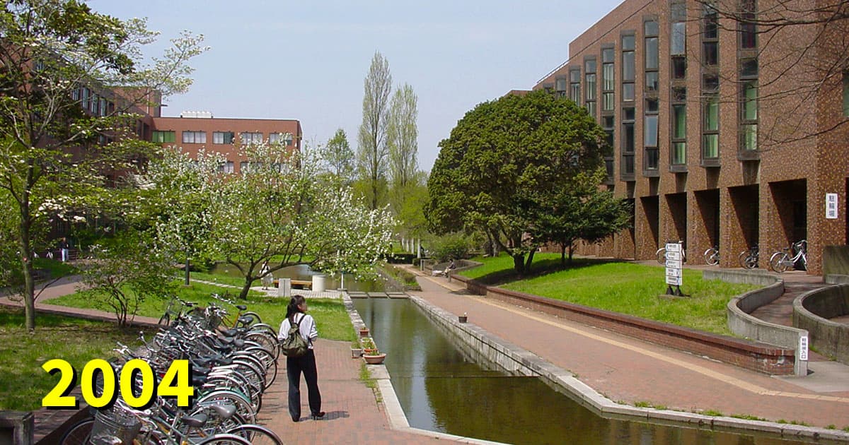 今では各棟ごとにカラフルに色分けされている第一エリアですが、開学から30年近くグレー一色でした。昔の卒業生にとってはこちらの色の方が懐かしいのではないでしょうか。