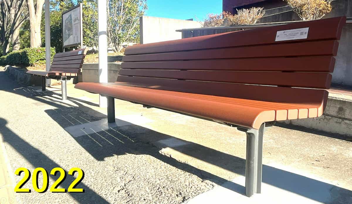 また、 2021年以降企業各社のご支援によりバス停のベンチが新調されていっています。