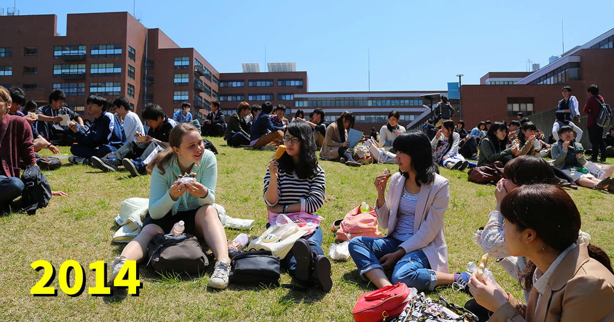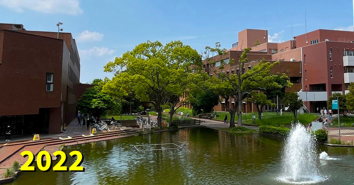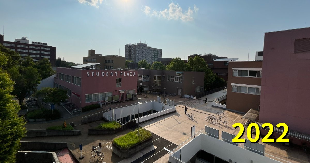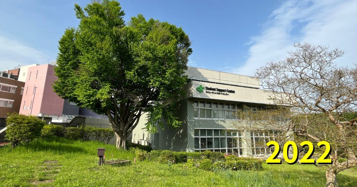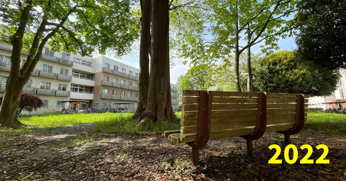 コロナ禍前には、芝生はたくさんの学生さんたちの憩いの場でした。今年こそキャンパスに賑わいが戻りますように…!