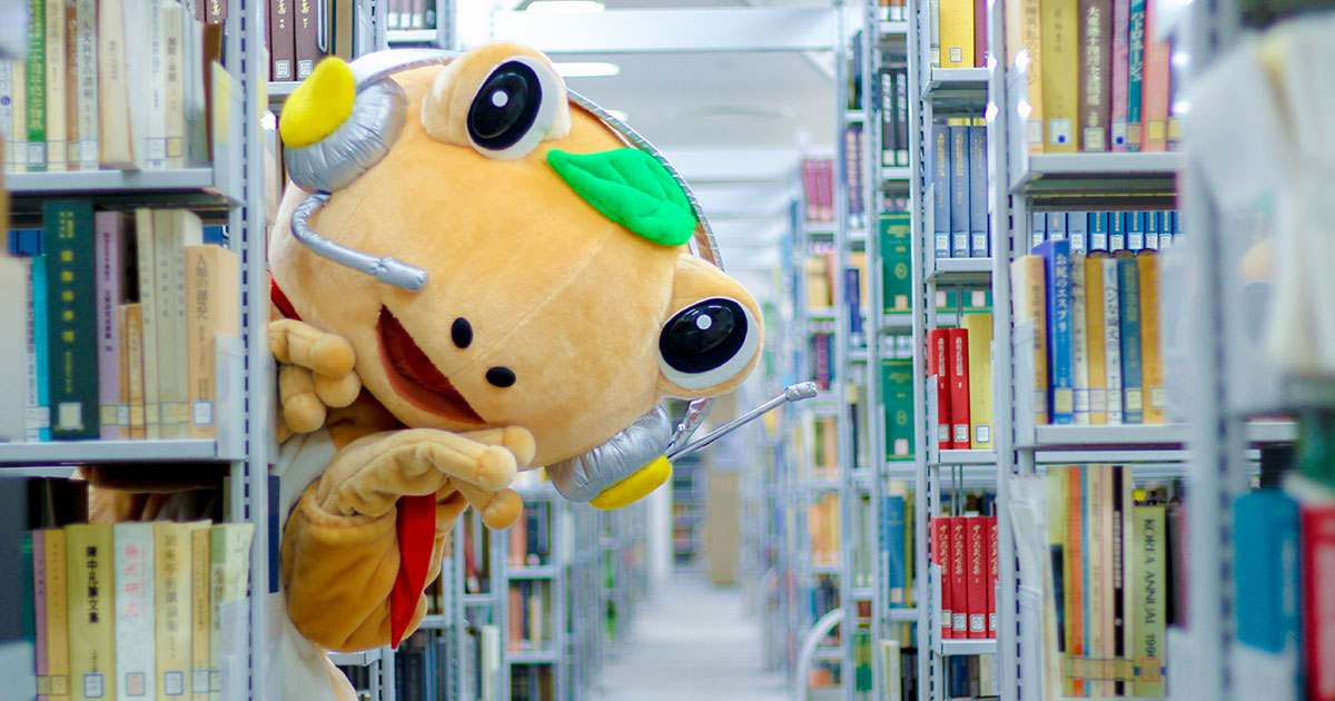 ところで、筑波大学附属図書館には「がまじゃんぱー」くんという、とてもかわいいキャラクターがいます。
