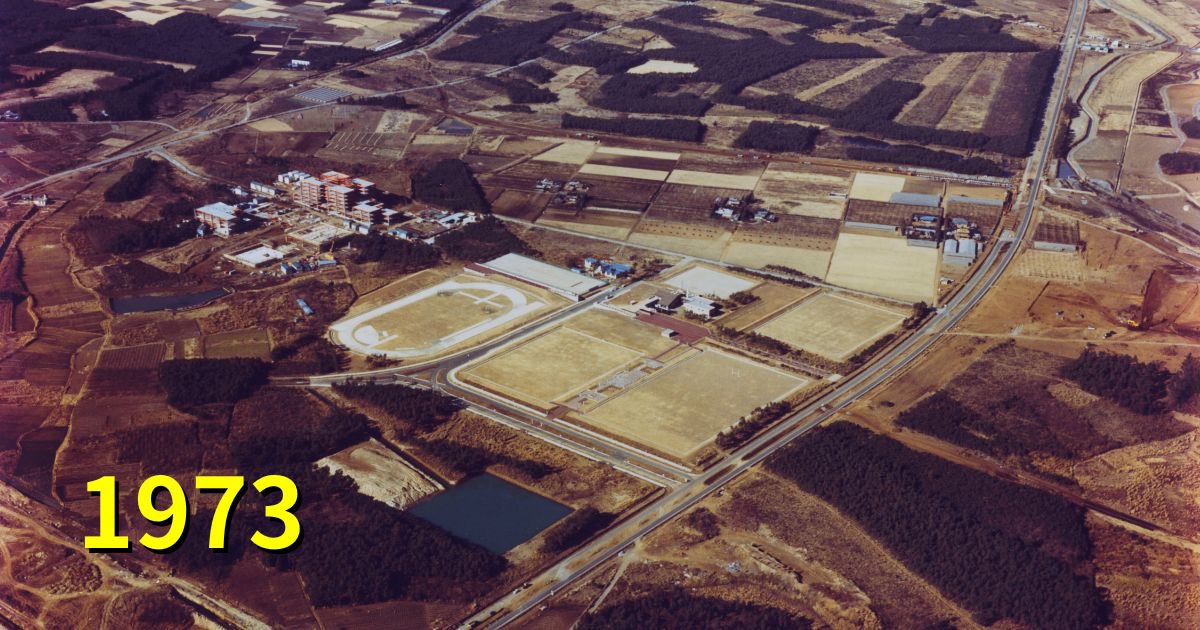 筑波大学は10月に開学50年を迎えます。開学直後の1974年に撮影された「伝説の写真」を一期生の渡部史人氏からご提供いただきました。この写真はどこから見たどちらの方角でしょう?