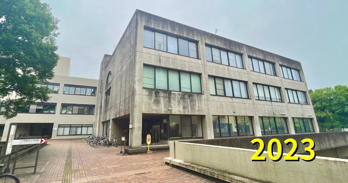「本部棟」が正解でした。写真は、大学公園バス停からループ道路を北向きに撮影したものです。