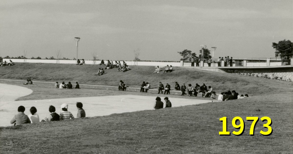 筑波大学は来年、開学50年を迎えます。開学まもない1970年代に撮影されたキャンパス内の写真が出てきました。筑波大学に来られた方なら誰でも見たことがあるスポットだと思います。ここは一体どこでしょうか?