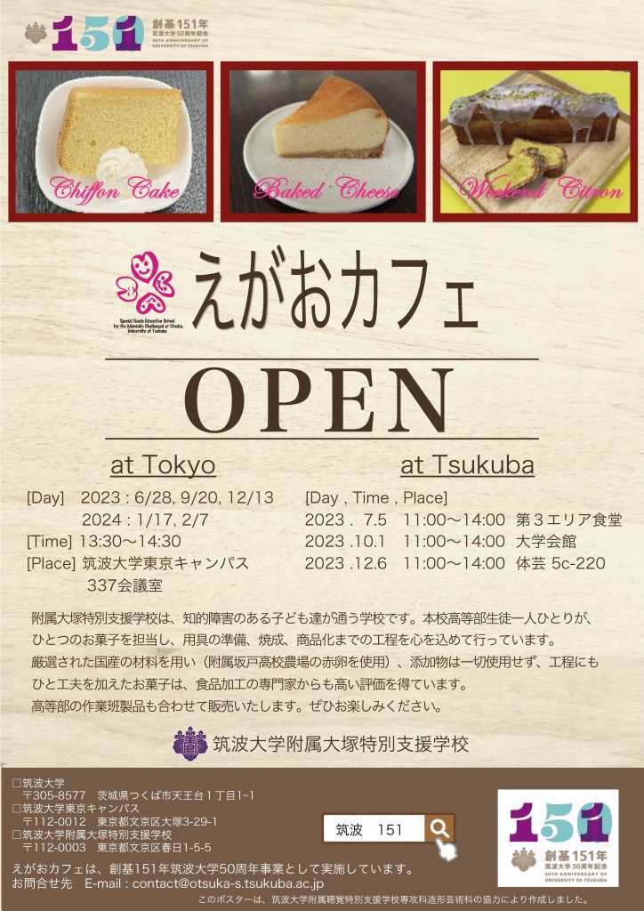 筑波大学附属大塚特別支援学校は、知的障害のある幼児児童生徒が通う特別支援学校です。本校は「えがおカフェ」として、本校高等部生徒による物品の開発・製作・販売活動、および、東京キャンパスにおける職業実習(屋内、屋外の清掃)を実施しています。