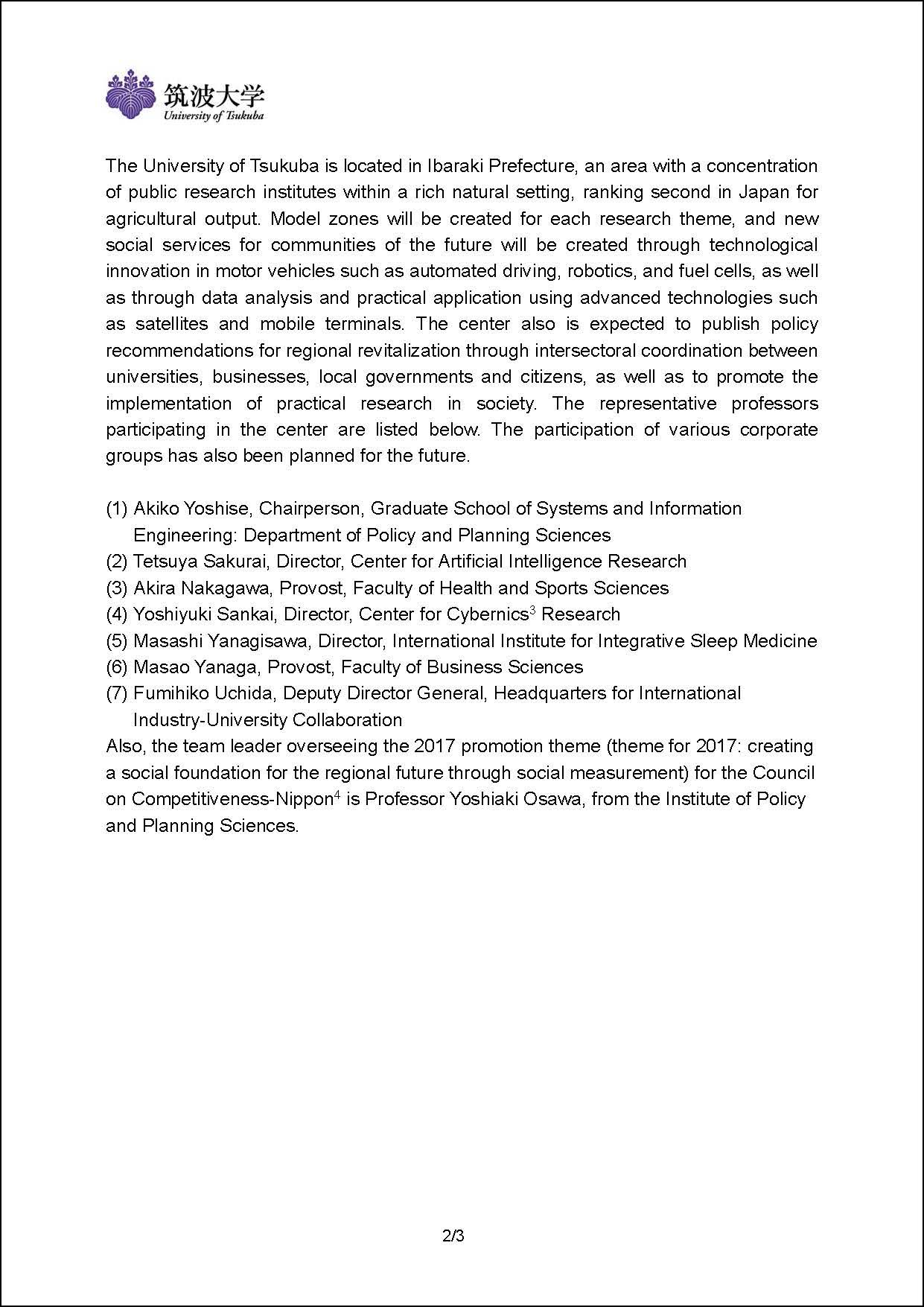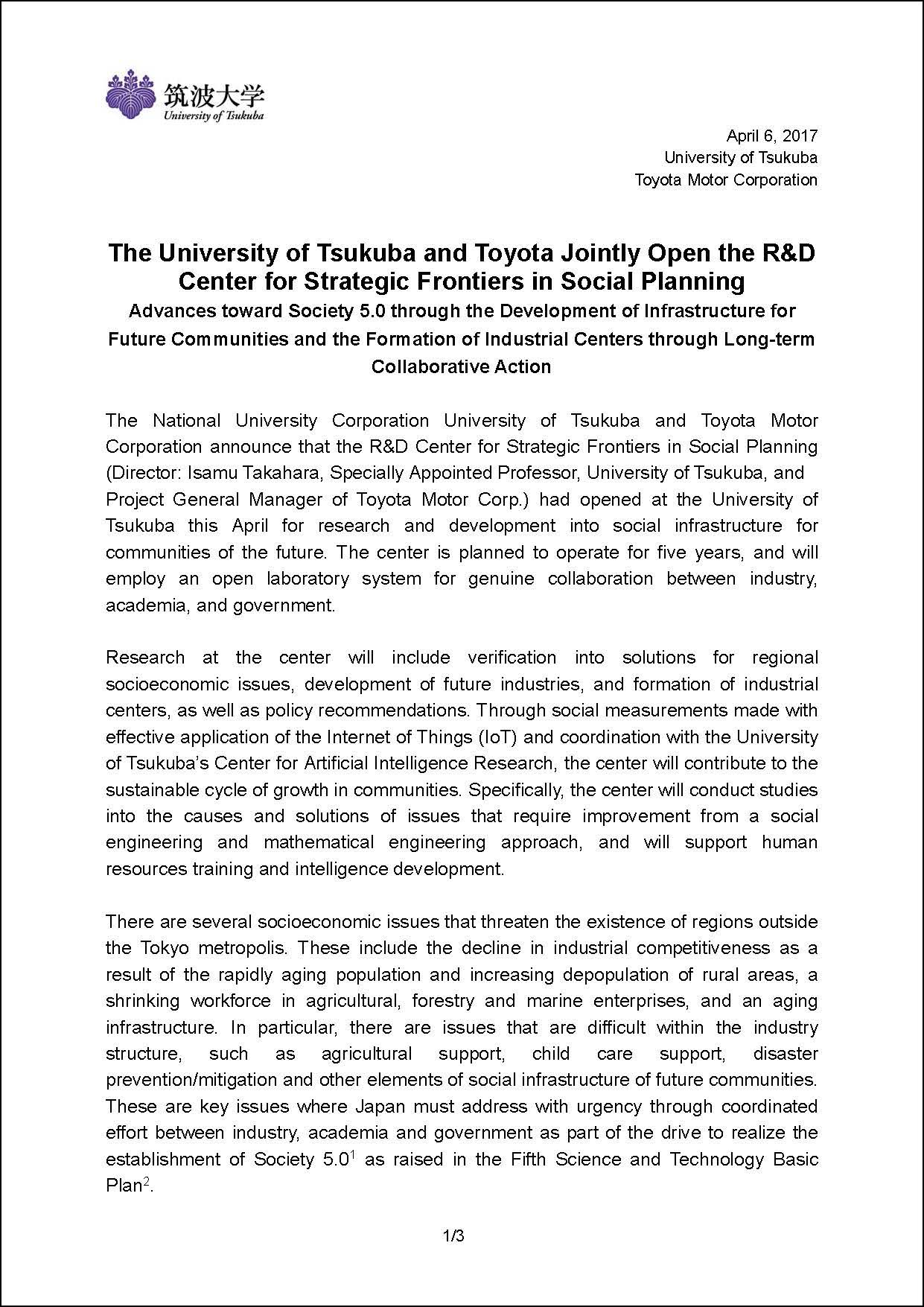 The University of Tsukuba and Toyota Jointly Open the R&D Center for Strategic Frontiers in Social Planning (Page1-3)