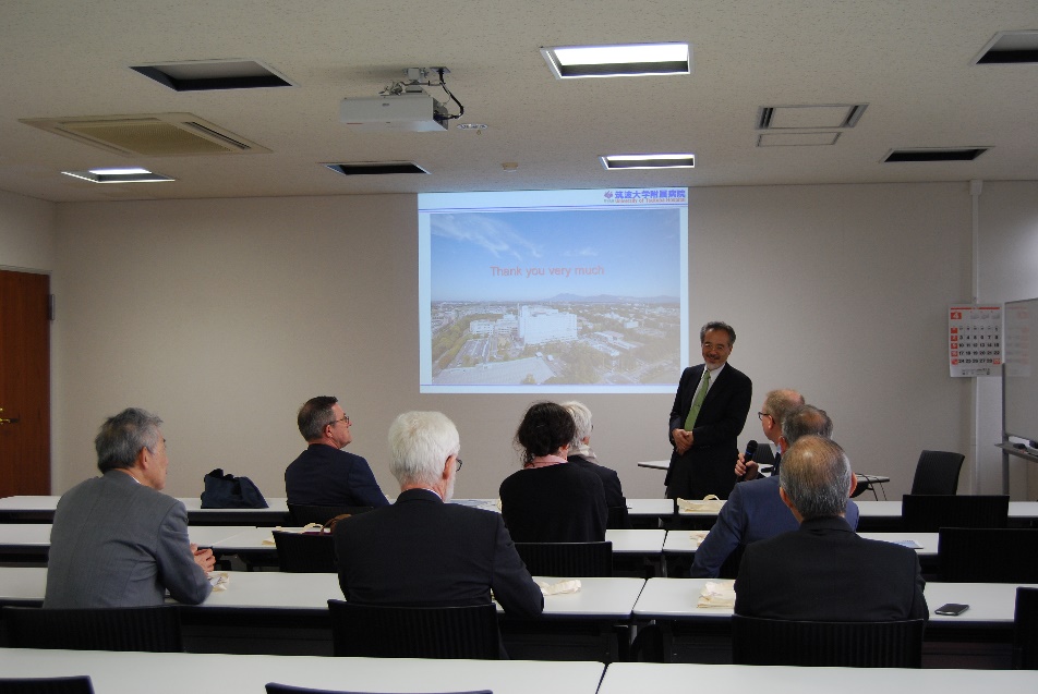 Director Matsumura of the University of Tsukuba Hospital giving an overview of the university hospital