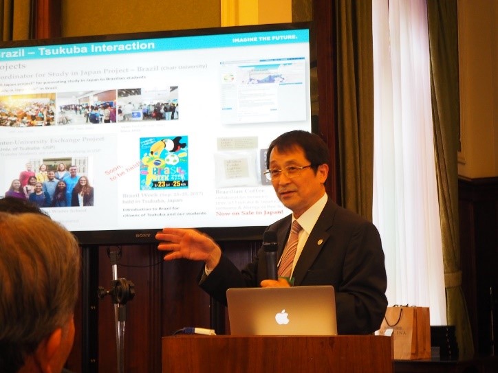 On June 9, 2017, President Kyosuke Nagata, together with Director Akira Matsumura of the University of Tsukuba Hospital, gave presentations on their specialized fields ? viral disease control and proton therapy & Boron neutron capture therapy for neurological disorders, respectively, during the "Seminar on Scientific Cooperation between Brazil - Japan" held at the University of Sao Paulo (USP) in Brazil. The symposium was held collaboratively by USP and Santa Cruz Hospital from the Brazilian side, and the Japan Society for the Promotion of Science (JSPS) and University of Tsukuba from the Japanese side. Researchers from both USP and University of Tsukuba gave presentations on their research in the medical sciences. Prof. Dr. Masato Ninomiya of the USP Law School and President of the Deliberative Council of the Santa Cruz Hospital, discussed the relationship between Brazil and Japan. Aside from his research presentation, President Nagata also announced the active collaborations going on between Brazilian research and educational institutions and the University of Tsukuba. Each representative of the partner institutions gave warm remarks during the opening part: Vice Dean Vahan Agopyan of USP, Director Jose Otavio Costa Auler Jr. of the Faculty of Medicine of USP (FMUSP), President Renato Ishikawa of Santa Cruz Hospital, and Consul General Takahiro Nakamae of the Japanese Consulate in Sao Paulo. They all expressed hope that this symposium would be an opportunity that will lead to revitalized human resource exchanges between Brazil and Japan, as well as research exchange among participating universities and organizations.