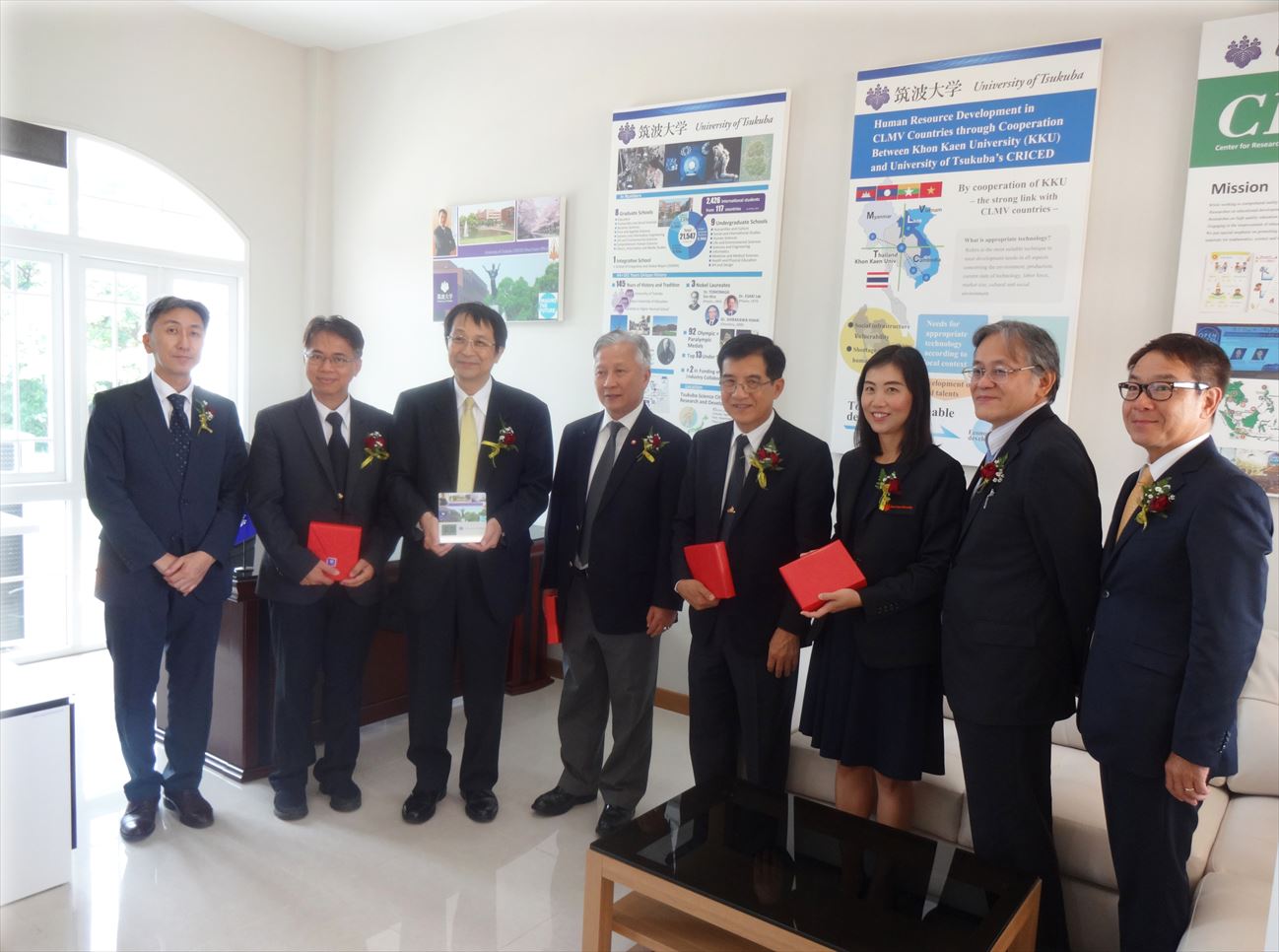 In October 2016, the University of Tsukuba concluded an international academic exchange agreement with KKU. In February 2017, President Kittichai Triratanasirichai of KKU visited Tsukuba and signed an agreement between the medical departments of both universities, hence, strengthening the partnership.