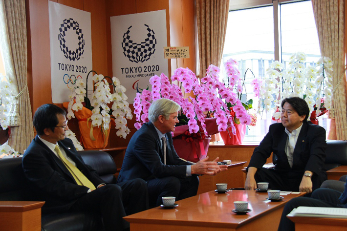 After the talk, President Kyosuke Nagata of the University of Tsukuba and NCAA President Mark Emmert made a courtesy visit to Yoshimasa Hayashi, Minister of Education, Culture, Sports, Science and Technology.