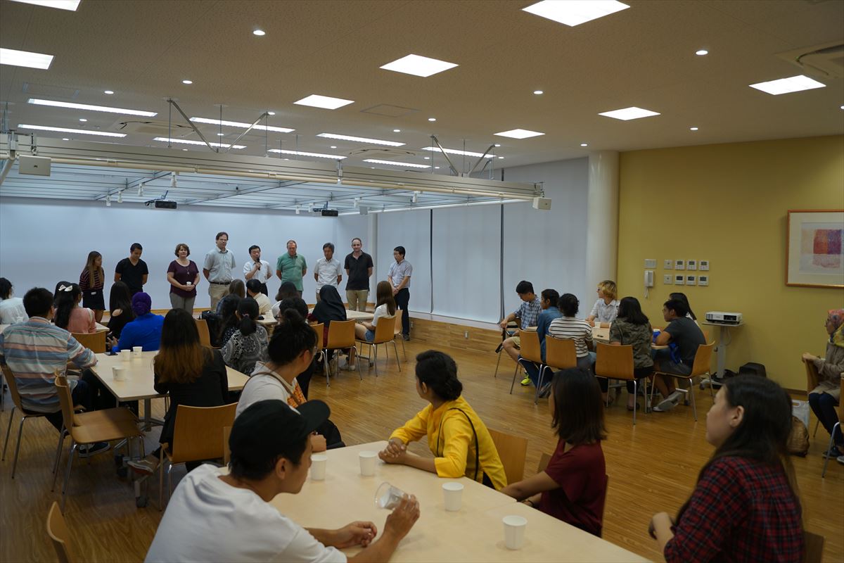 They were from 18 different countries in Asia, Europe, North and Middle America, and Africa. Communicating in English, Japanese, or other languages, they enjoyed the multicultural atmosphere at the party, never running out of things to talk.