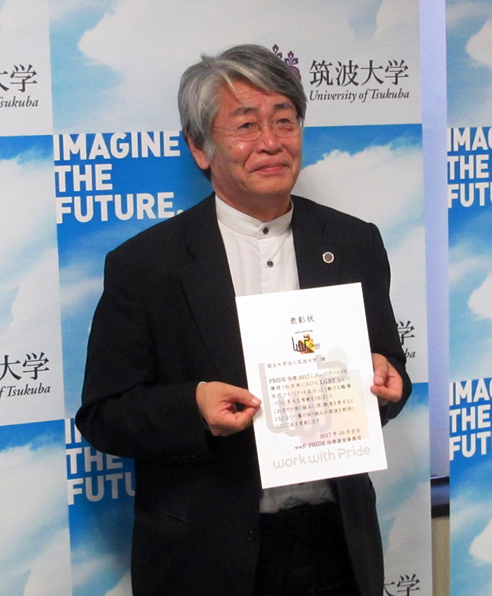 A voluntary association, work with Pride (wwP), gave awards to companies and organizations in honor of their efforts to improve the working environment for LGBT people. Receiving a high evaluation for its effort, the University of Tsukuba won GOLD in this event. In addition, the university was selected as one of five Best Practice Award winners in the Policy (Declaration of Action) category.
