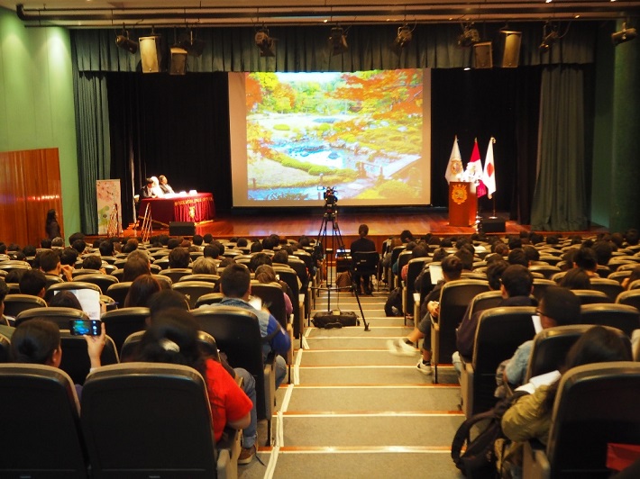 The UNMSM is the oldest university in the South America, where university ruins still remain. The fair was held at an auditorium on campus. It started with an opening speech by UNMSM university staff, then followed by a presentation session by universities and educational institutions from Japan. Many students visited each booth, waited in line to receive consultation about studying in Japan.
