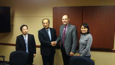 From left; Prof. Kenji Miura, Director Hiroshi Ezura, Associate Provost Steven D. Hanson, Ms. Rie Takata
