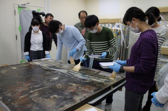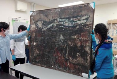 A total of 48 paintings that are in urgent need of first-aid treatment and repair procedures were sent to the University of Tsukuba in October, 2016.