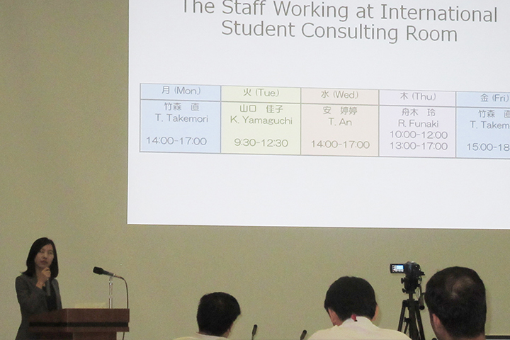 Moreover, in the third part, Assistant Professor Tingting An at the International Exchange Support Division of Global Commons introduced how the university supports international students at the International Students Advisory Room.