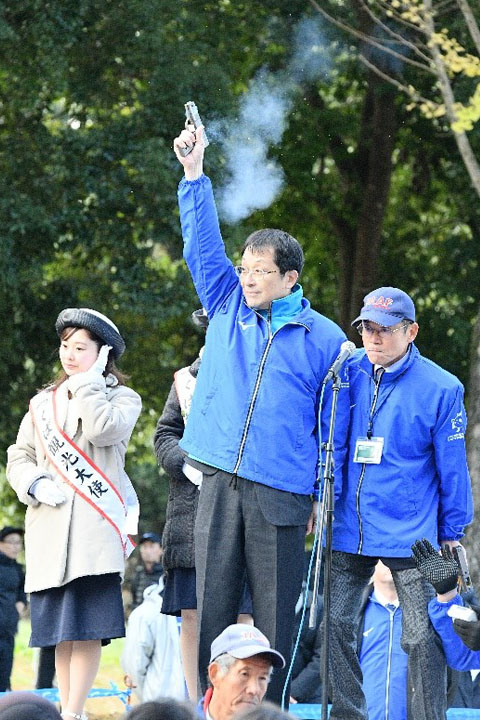 President Kyosuke Nagata served as the starter for the third wave of the wave start launching out more than 3,000 runners.