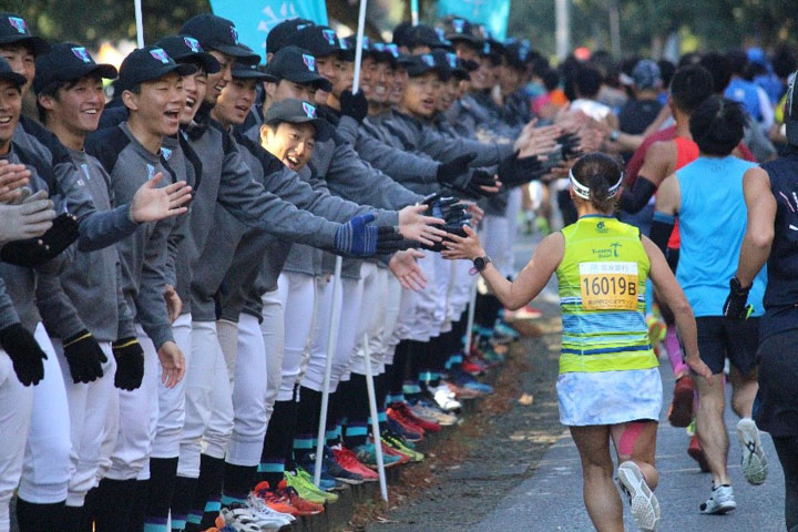 The Tsukuba marathon was held under the theme of "Marathon with a Scientific Look" and has the following 6 perspectives: "Start," "Landscape," "Traffic regulation," "Water and food stations," "Running form," and "Cheering."