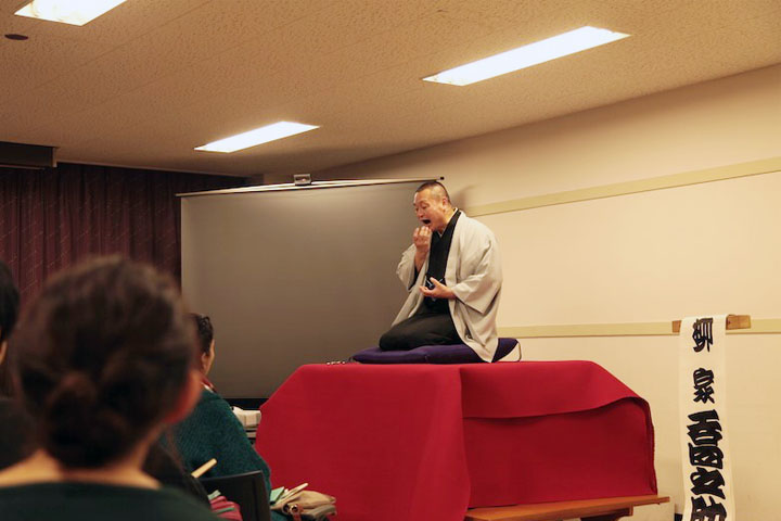 We were honored by a rakugo performance and a traditional Japanese music performance for foreign students by the Rakugo performer Master Kyounosuke Yanagiya and the traditional Japanese music performer Master Kogiku Yanagiya. By the assistance of translations and illustrations using PowerPoint, Japanese language beginners enjoyed the performance. Many international students remarked that they enjoyed the experience. On the other hand, there were comments from Japanese participants that they found out again that there are the many things the Japanese did not know, and the importance of telling international students Japanese culture, and its difficulty.