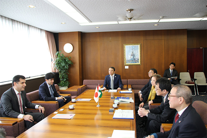 A delegation led by Mr. JALOLOV MIRZOSHARIF, ambassador extraordinary and plenipotentiary of the Republic of Tajikistan to Japan made a courtesy visit to President Kyosuke Nagata and Vice President BENTON Caroline F. (Global Affairs) on February 19.
