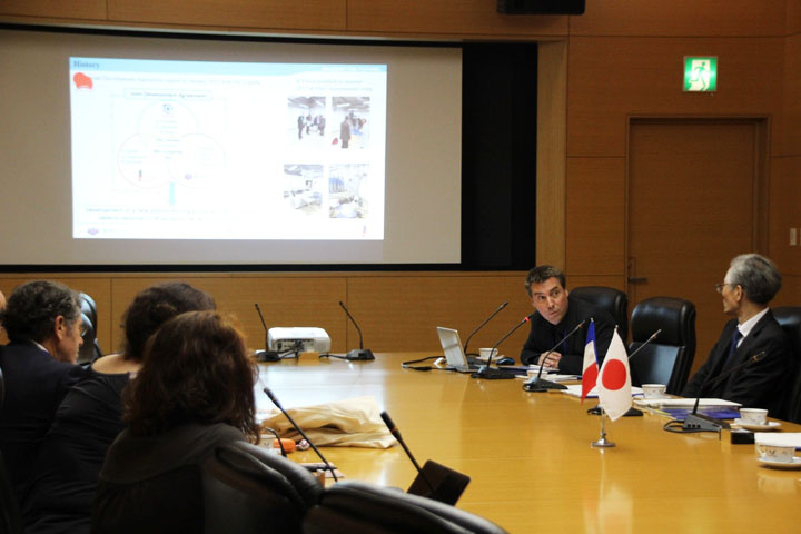 In the visit, we discussed future developments for the International Education and Research Laboratory Program and an International Joint Usage/Research Center of the French National Centre for Scientific Research (CNRS). The two universities are expected to expand exchanges in the future.