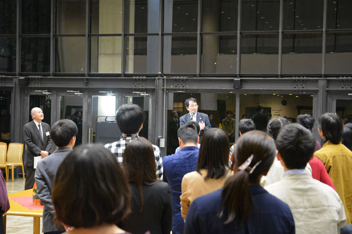 The second part was an exchange party hosted by the Head of the Student Support Office Nobuhiro Kaga at the Restaurant Plaza "Tsukuba Demi", also attended by teachers and staff including the Vice Presidents, Executive Officers, Deans, and related office's Directors besides the participants in the first part. A total of 57 students including 8 international students and 26 teachers and staff attended. It was a great opportunity for students to talk face to face with the President, other schools' students, and teachers and staff.
