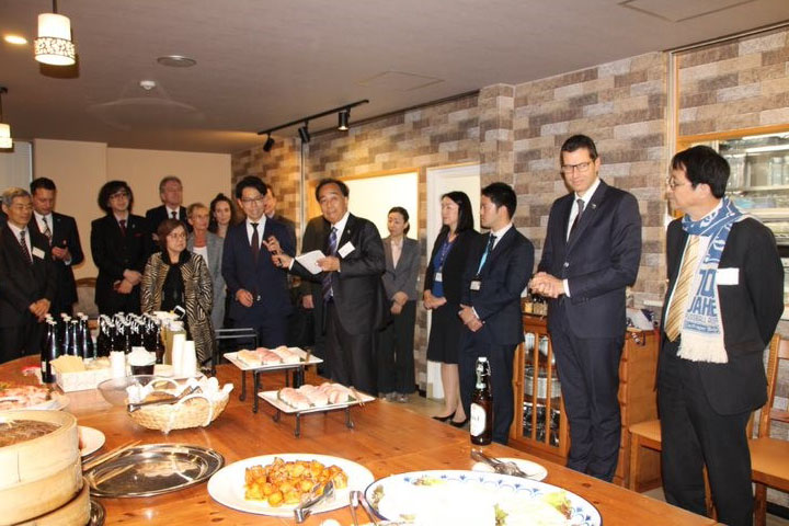 After the ceremony, a delegation from the City of Bochum made a courtesy visit to President NAGATA at the Tsukuba Campus. Subsequently the delegation toured the University of Tsukuba Hospital, the Center for Innovative Medicine and Engineering (CIME), and CYBERDYNE, Inc. and attended an after ceremony party hosted by the University of Tsukuba, where a total of 50 people including President Nagata, Mayor Igarashi and Tsukuba City officials, Mayer Eiskirch and Bochum City officials and the university members involved in Bochum promoted mutual friendship.