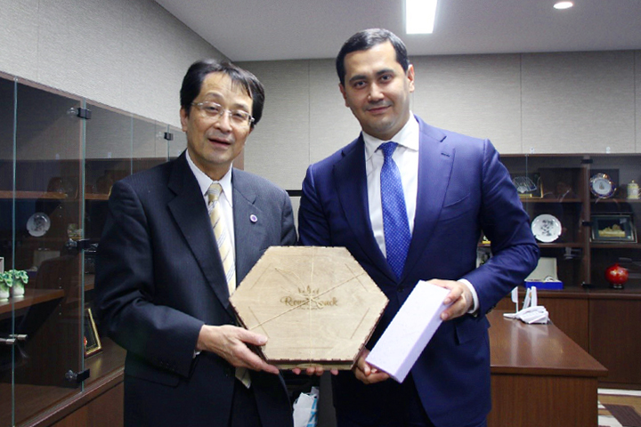 A delegation led by H.E. Dr. Sardor Uktamovich UMURZAKOV, Minister of Investments and Foreign Trade of the Republic of Uzbekistan made a courtesy visit to President NAGATA Kyosuke, Professor USUYAMA Toshinobu of the Faculty of Humanities and Social Sciences (Russia and Central Asia Regional Director), Professor ONO Masaki of the Faculty of Humanities and Social Sciences, and Deputy Director TANAKA Kentaro (Global Affairs). Attendees from Uzbekistan are H.E. Dr. Sardor Uktamovich Umurzakov, Minister of Investments and Foreign Trade, Mr. Laziz Kudratov, First Deputy Minister of Investments and Foreign Trade, H.E. Mr. Gayrat Fazilov, The Ambassador Extraordinary and Plenipotentiary, Mr. K. Kamalov, Director of Agency for Attracting of Foreign Investments, and Mr. O. Khamraev, Director General, Ministry of Investments and Foreign Trade.