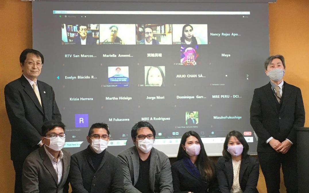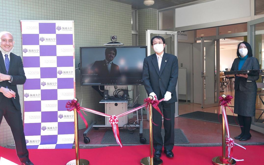 On February 9, 2021, a ceremony was held to inaugurate the satellite offices of the Universidad Nacional de San Marcos (UNMSM) in Peru and the University of Tsukuba. The Peruvian office (Study in Japan) was established on the Peruvian side, while the University of Tsukuba has a satellite office (Study in Peru) in the university's Overseas Commons, which is expected to further strengthen human resource development and exchange between the two countries. On the ceremony, we had Mr. KATAYAMA Kazuyuki, Ambassador Extraordinary and Plenipotentiary of Japan to Peru, Mr. Eduardo Rafael Bernales Mesa, Director General of the Department of Educational Relations and Sports of the Ministry of Foreign Affairs of Peru, and Dr. Orestes Cachay Boza, President of the National University of San Marcos.