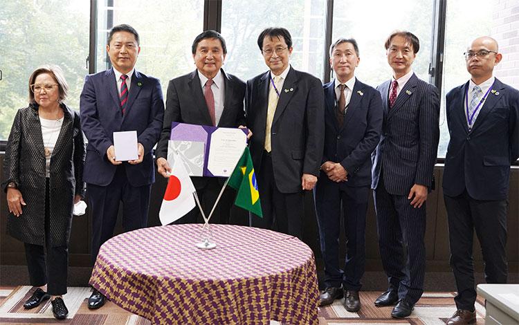 On October 17, Mr. ICHIKAWA Toshio, President and Mr. NAGAYA Mitsuyoshi, Vice President of the Federation of Associations of Provinces of Japan in Brazil (KENREN) visited the University of Tsukuba and met with President NAGATA Kyosuke, Vice President and Executive Director for Global Affairs BENTON Caroline F., Executive Officer OHNEDA Osamu (Director for the Bureau of Global Initiatives), and Deputy Director for Global Affairs KUWAHARA Tatsuya. During the meeting, they discussed the possibility of future collaboration for exchange between Japanese and Brazilian youth through study abroad, and expressed their expectations for further strengthening of cooperation between the University of Tsukuba and the Federation of Associations of Provinces of Japan in Brazil.