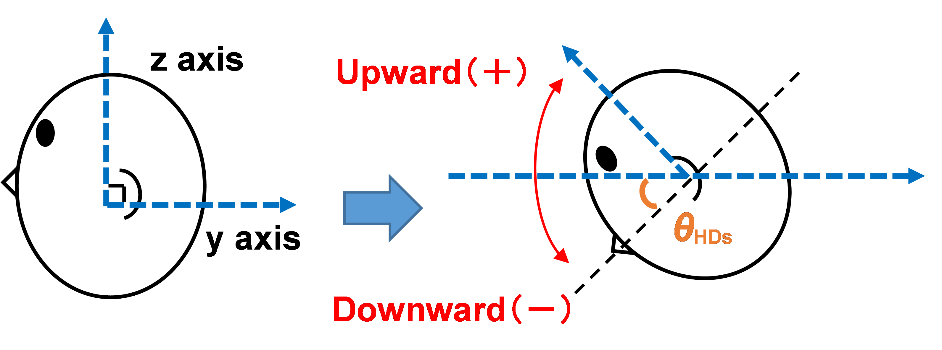 Fig. 2 The definition of head rotation angle in the sagittal plane (θHDs).