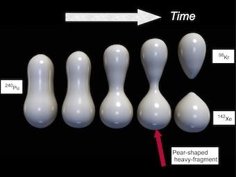 Why does nuclear fission produce pear-shaped nuclei?