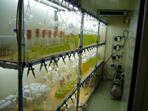 (Left photo) Culturing Botryococcus