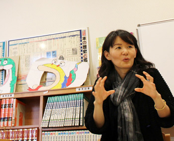 Prof. Suzuki has done much research on the influence that reading has on children's development, as well as on the influence of print, video, and electronic media, and has learned that people hold strong, positive feelings toward the school library. Recently, she has received many requests to give talks on reading and children's advancement.