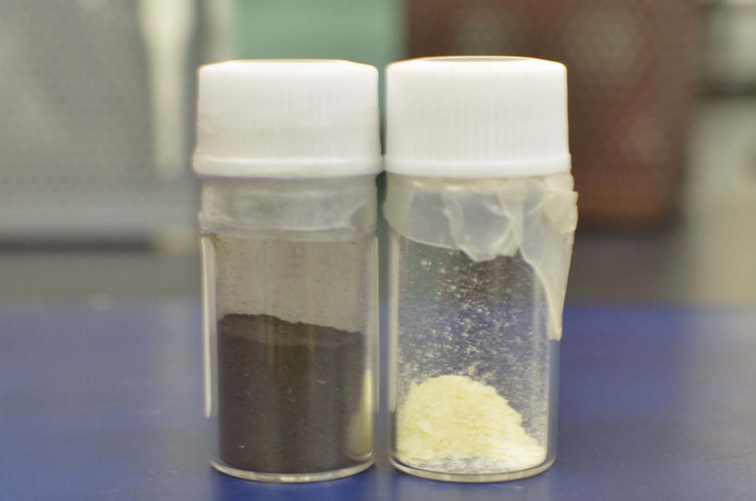 Magnesium diboride, a starting material (left), and the newly synthesized hydrogen boride (right)