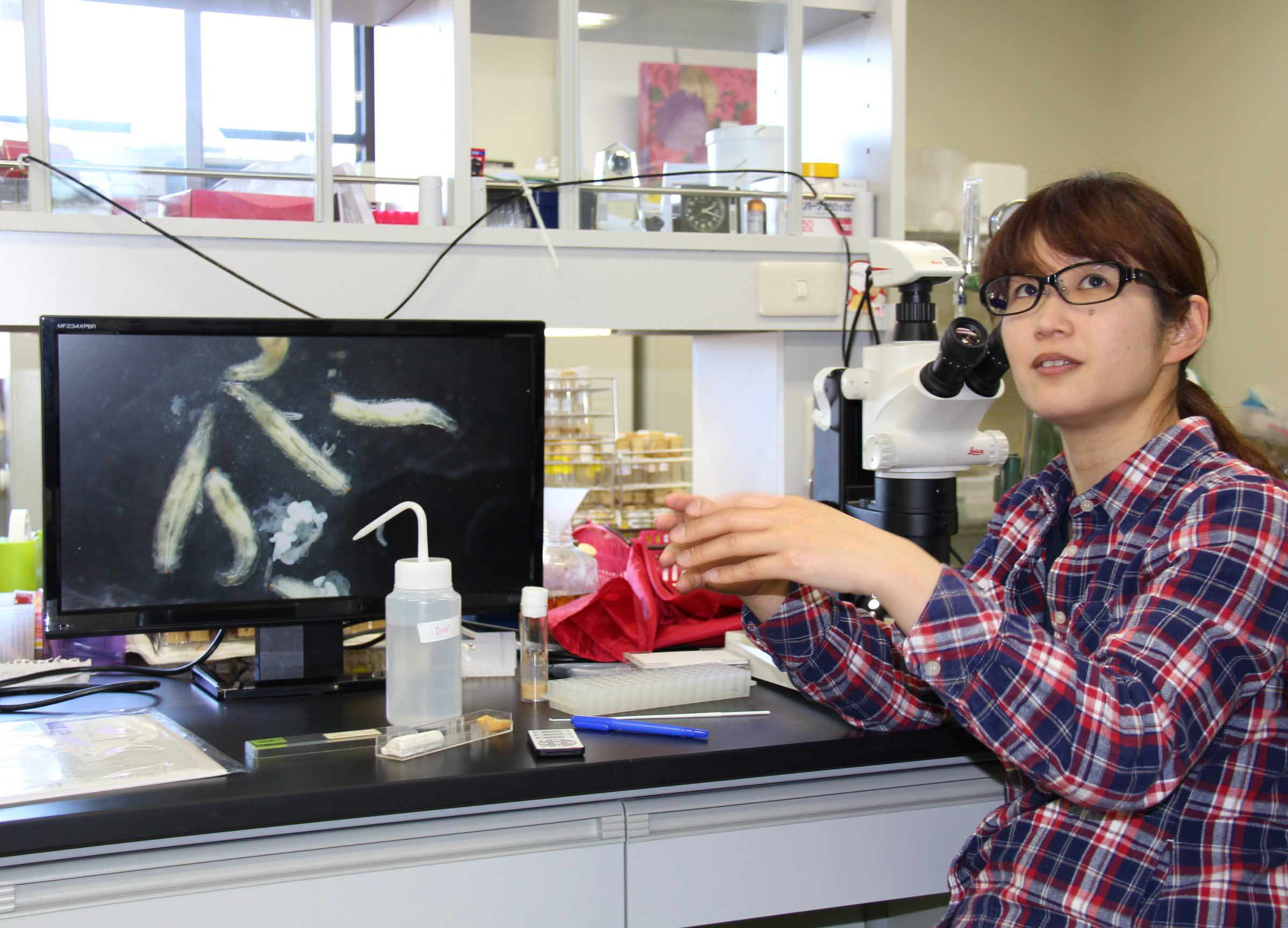 Adequate nutritional intake is essential for healthy growth. In recent years, however, issues like obesity and precocious puberty in children due to excessive nutrient intake have come to the fore in advanced countries. The importance of nutrition is the same for humans and insects. Among insects, a poor nutritional environment leads to delay in larval growth, and death due to the inability to molt or undergo metamorphosis. Professor Shimada is engaged in research at the molecular level using the fruit fly (Drosophila melanogaster) to determine how the maturation of organisms is induced by nutrition.