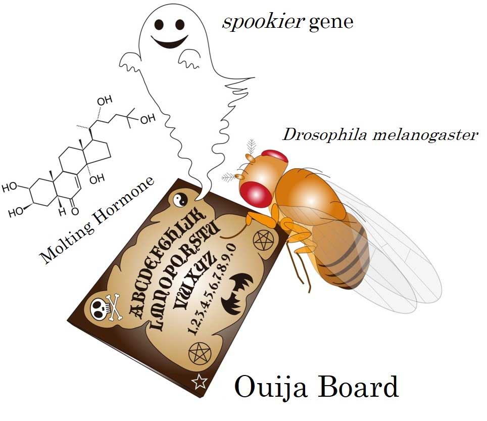 The Ouija board gene switches on the gene for the enzyme spookier that produces molting hormones for Drosophila melanogaster.