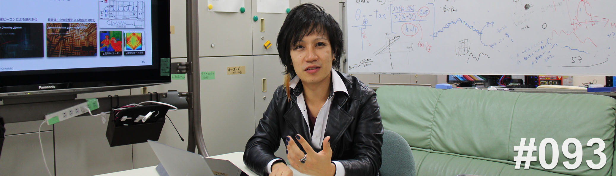 Prof. Zempo has also been augmenting his own areas of interest since studying at the University of Tsukuba. From research on radio telescopes in his undergraduate days, he switched to studying management in the master's degree course of the graduate school, and for the PhD course transitioned once again to research on acoustic signal processing. As a postdoctoral researcher, he did research in service engineering. With his innate love of gadgets and his self-admitted penchant for prominently shifting from one field to another, Prof. Zempo has simultaneously engaged in a number of interdisciplinary researches that span conventional field boundaries, espousing a broad-but-shallow creed. In his graduate school days he planned a lecture subject for graduate students titled "Professors Presentation Battle" and exhibited considerable initiative in appealing directly to the dean to have it adopted.