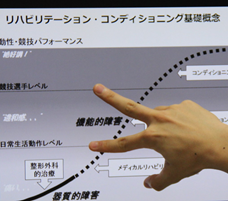 Injuries are an inevitable part of sports, but athletes cannot simply continue while enduring pain and training on their own. The job of a trainer is to provide proper support and guidance so an injured athlete can quickly return to or improve their original competitive level, and to prevent recurrence of the same injury. A trainer educates athletes to practice injury prevention techniques on their own, and offers support suited to individual needs. To do that, he or she must have a wide range of knowledge and skills, on everything from the special characteristics of each sport, to the structure of the body and psychological aspects.