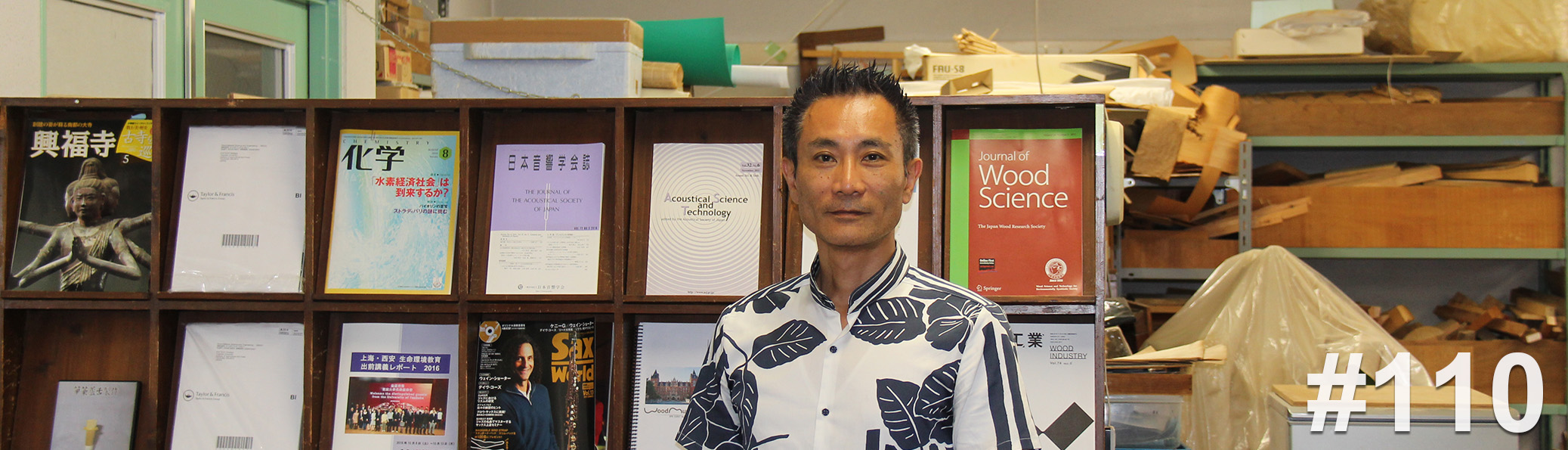 Various musical instruments such as violins, guitars, marimbas and recorders are made of wood. Their beautiful sounds are achieved by the characteristics of wood: lightweight, fast sound propagation, anisotropic nature and so on. No matter how high-tech, no synthetic material can substitute wood at this time. Focusing on the kind of wood used in stringed and wind instruments, Prof. Obataya dedicates his studies to the extraction of even higher quality and value enhancement.