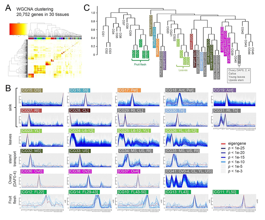 図 メロン組織別発現遺伝子情報(トランスクリプトーム情報)のクラスタリング結果