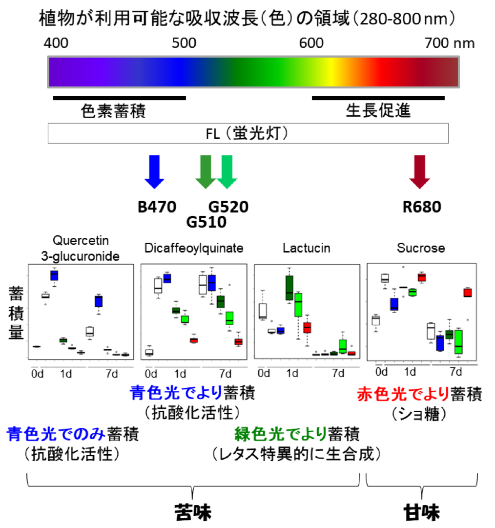 レタスは光強度・光質により代謝を自在に改変する ~狭波長LED光源による有用代謝物生産性のカスタマイズ化に成功~