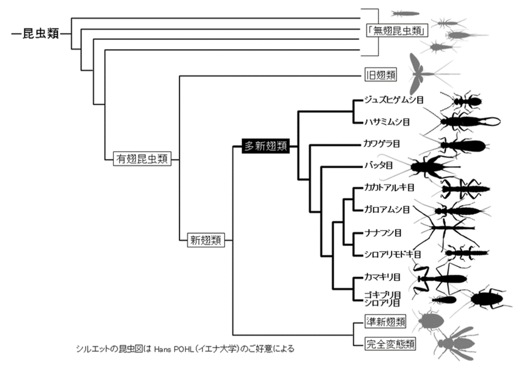 有翅昆虫類の系統樹の構築 〜身近なバッタ、カマキリなどからなる多新翅類の祖先型を復元〜