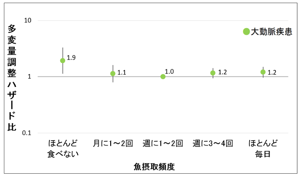 魚をほとんど食べない人で大動脈疾患死亡が約2倍に増加