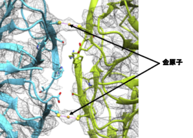 TRAPと呼ばれる11量体のタンパク質に変異を入れ、金誘導体を加えたところ、非常に特異な、閉じた網かご状の正多面体(ケージ)の形成に成功しました。このケージは、加熱や変性剤にも強い反面、還元剤を加えるとバラバラになります。このように丈夫で安定な上に、閉じたり開いたりできるケージは、これまでありませんでした。さらに、このケージには鏡像の関係にある2種類の会合様式が存在し、それらが1:1の割合で溶液中に作られることもわかりました。本化合物を使って、薬剤の輸送などの応用が期待されます。