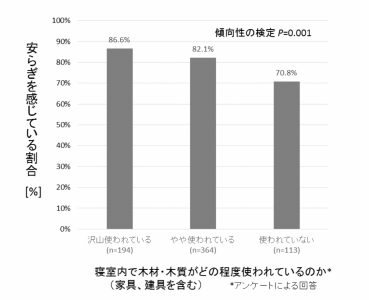 図 寝室の木材・木質量別の寝室で精神的なやすらぎを感じる割合
