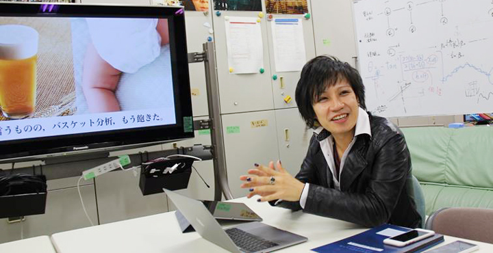 経営学修士の経歴を活かし、サービス現場での実験的研究も展開中です。スーパーマーケットの買い物カゴに赤外線ビーコンを装着し、その角度を計測する受信機によって客の動線を記録すると同時に買い上げ商品情報も吸い上げ、ビッグデータを収集しようというのです。そう書くとたいそうな装置に聞こえますが、善甫さんは、これを低コストかつ高精度に実現することに成功しました。目指す先は、すべての客にピンポイントでサービスを提供することです。商品の好みや並べ方はもちろん、知覚拡張装置と組み合わせれば、お探しの商品が語りかけてきたり、言語の異なる人たちが自由に会話を楽しみながら買い物を楽しむことだって夢ではありません。善甫さんはそれを、19世紀以前の物理学が想定した宇宙を満たす物質「エーテル」のようにAIが空間を満たす世界と語ります。