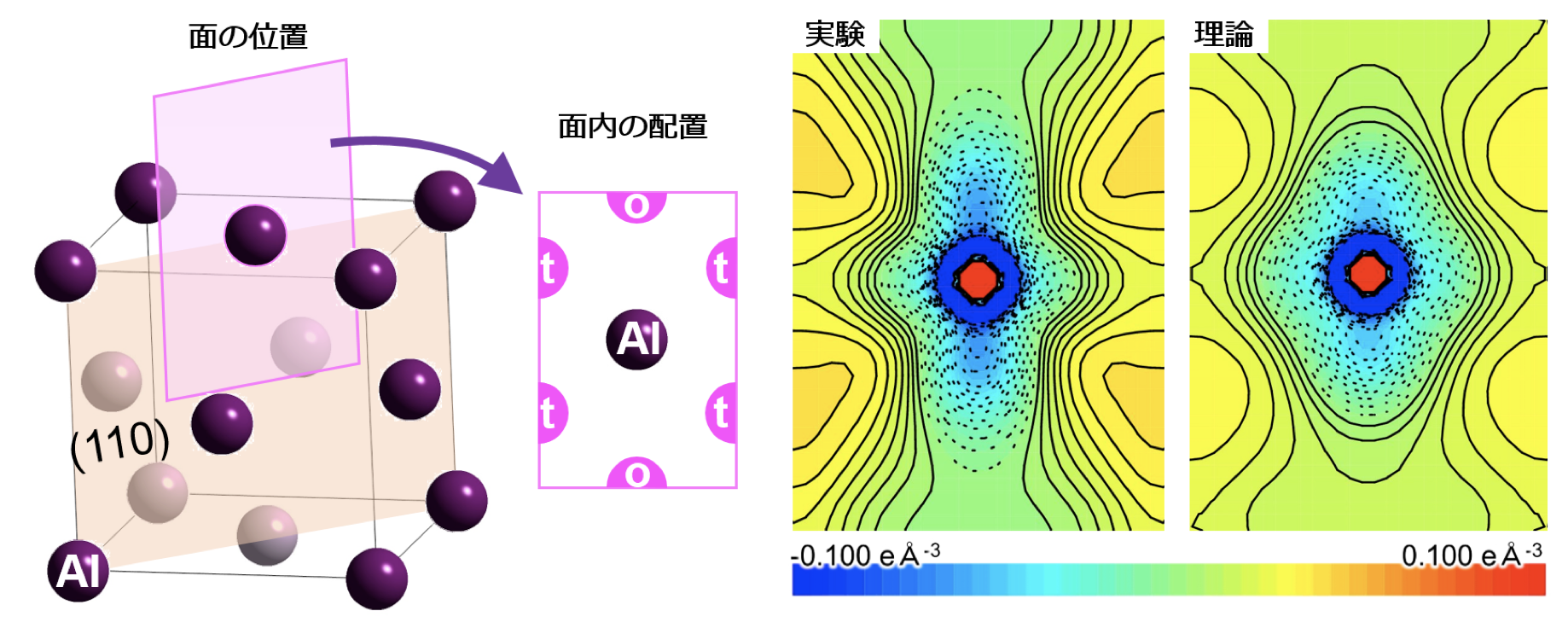 図 実験と理論計算でのアルミニウムの金属結合の分布。