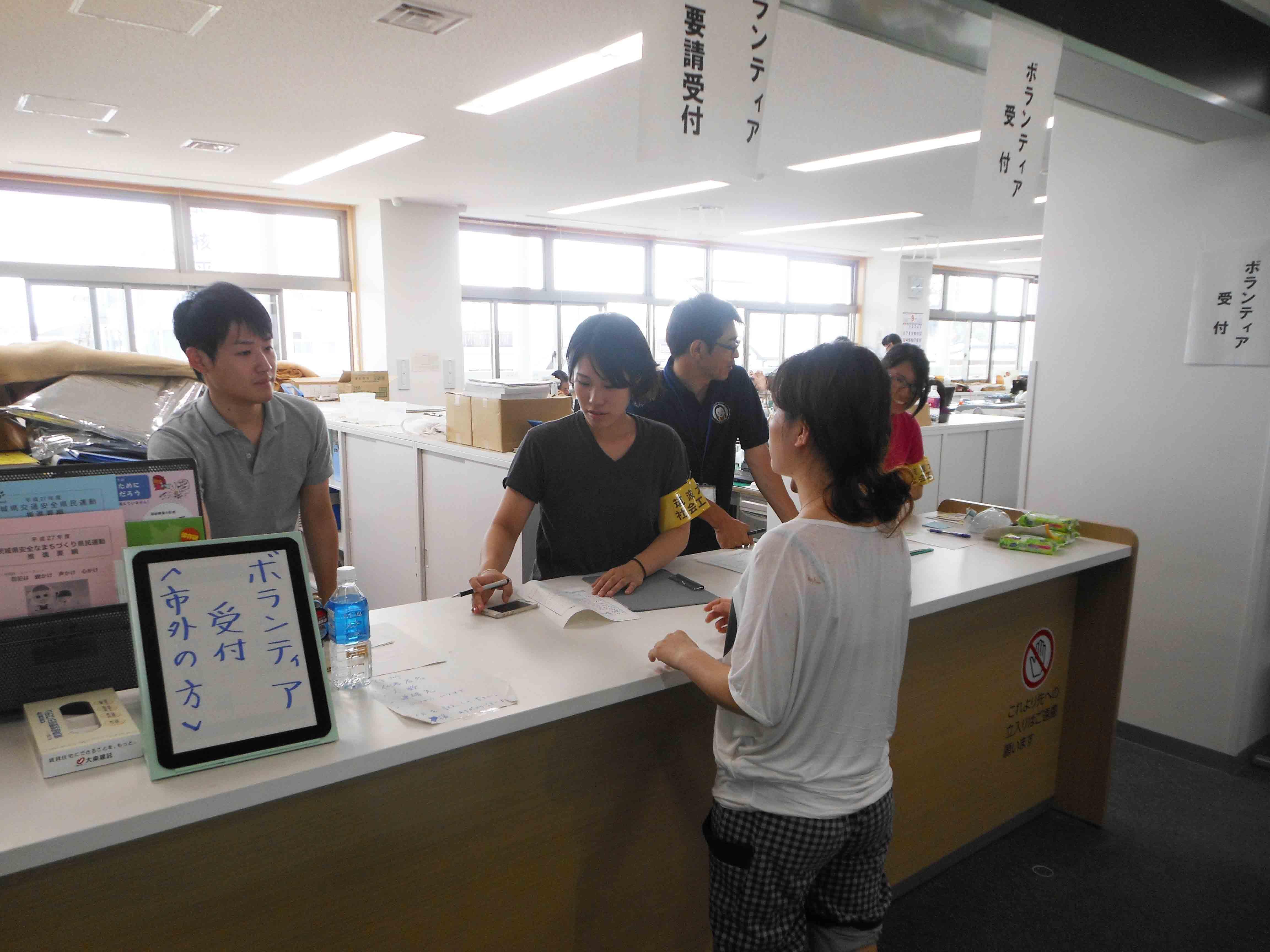 市役所のボランティア窓口業務を補助する社会工学専攻及び社会工学類の学生(9月14日~9月16日)