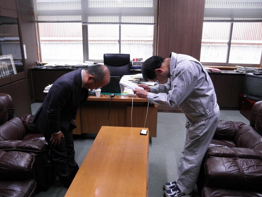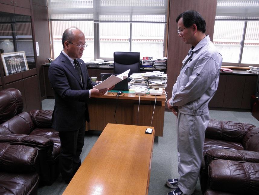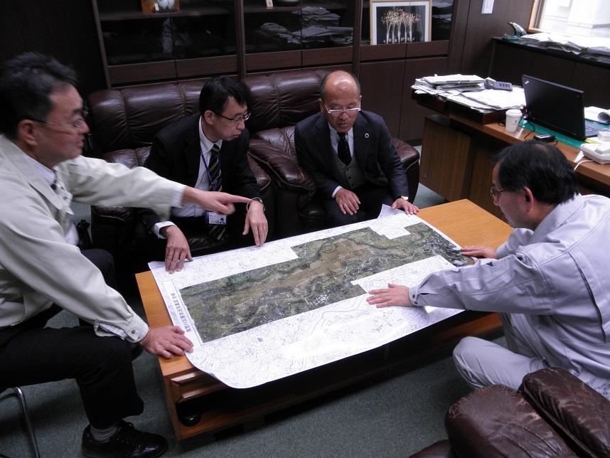 塩畑副市長から,被害状況の説明を受ける稲垣副学長
