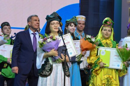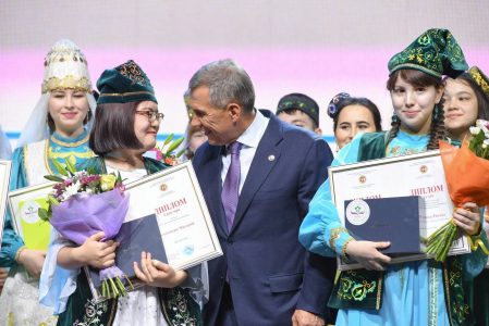 優勝者の中村氏には,タタールスタン共和国ルスタム・ミンニハノフ大統領から表彰状,賞品(最新式タブレット端末),民族衣装(カムズルとカルファク),カザン連邦大学への入学権利が授与されました。